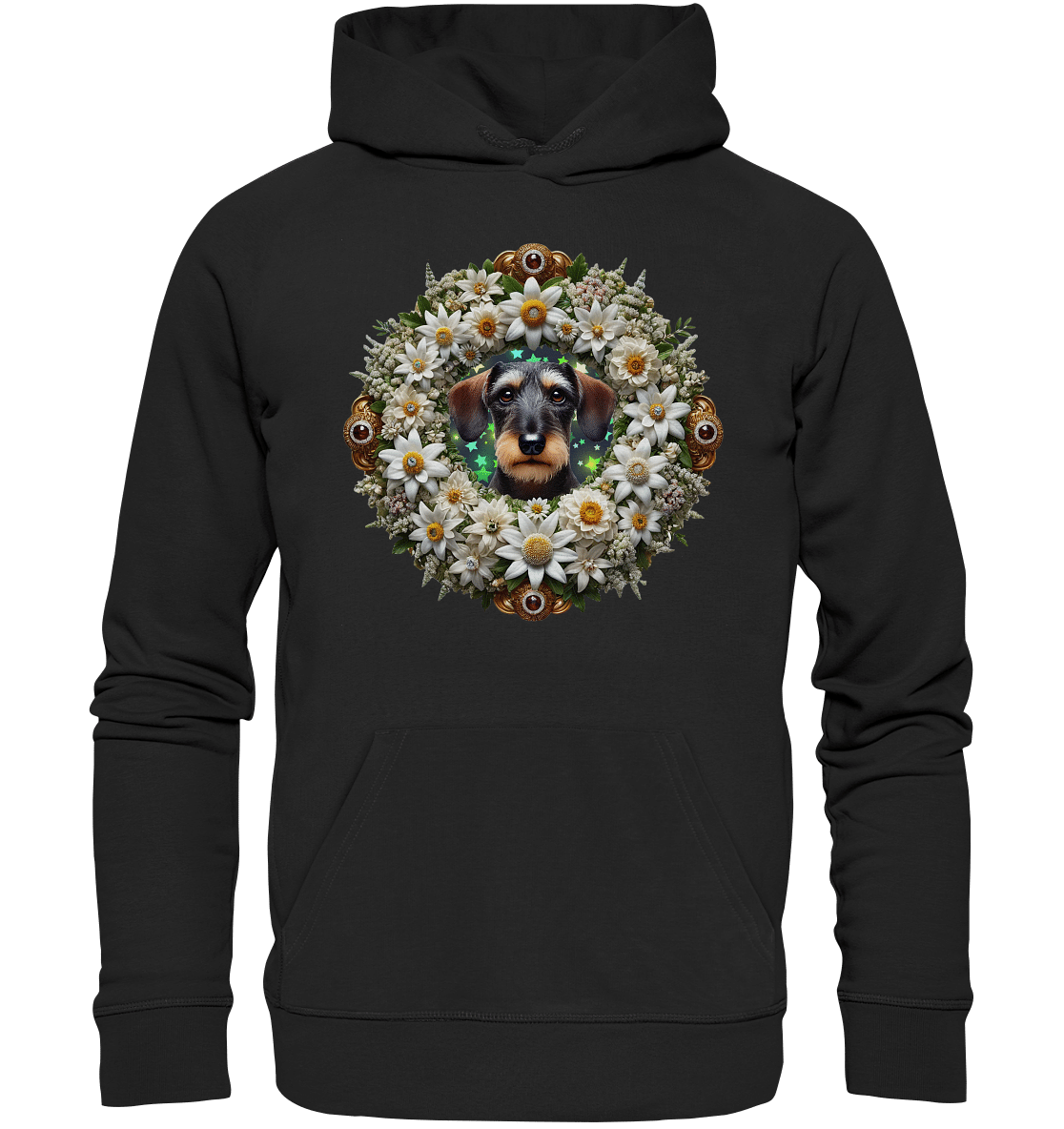 Rauhaardackel Flower 1 by Nina Queer | NQ – Organic Hoodie