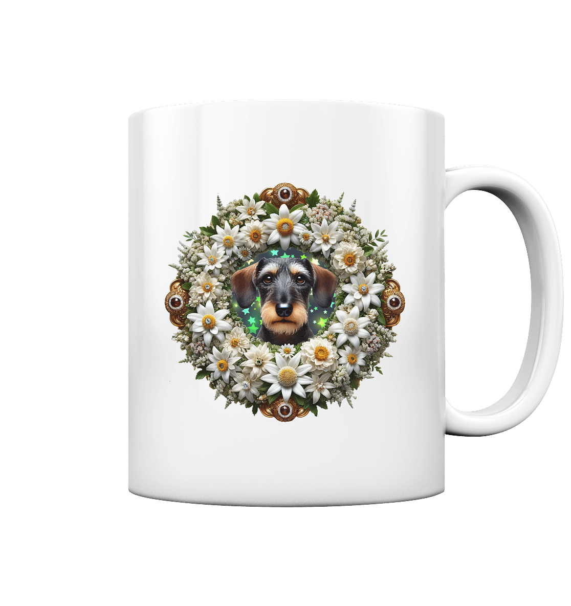 Rauhaardackel Flower 1 by Nina Queer | NQ – Tasse glossy