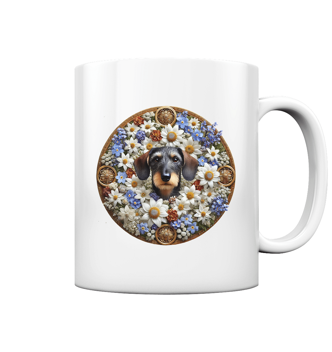 Rauhaardackel Flower 4 by Nina Queer | NQ – Tasse glossy